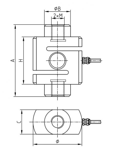 型号 | 量程(kN) | 量程(t) | A | B | ΦB | Φ | M | C |