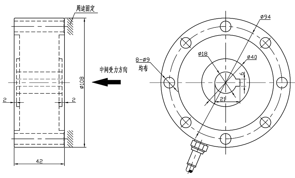产品特点:TQ-1Q键槽轮辐式测力传感器采用低截面设计的传感器,是为试验机专门设计的拉压两用传感器