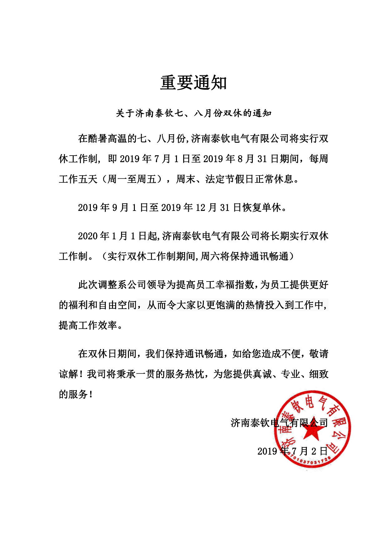 有关2020年1月1日双休通知