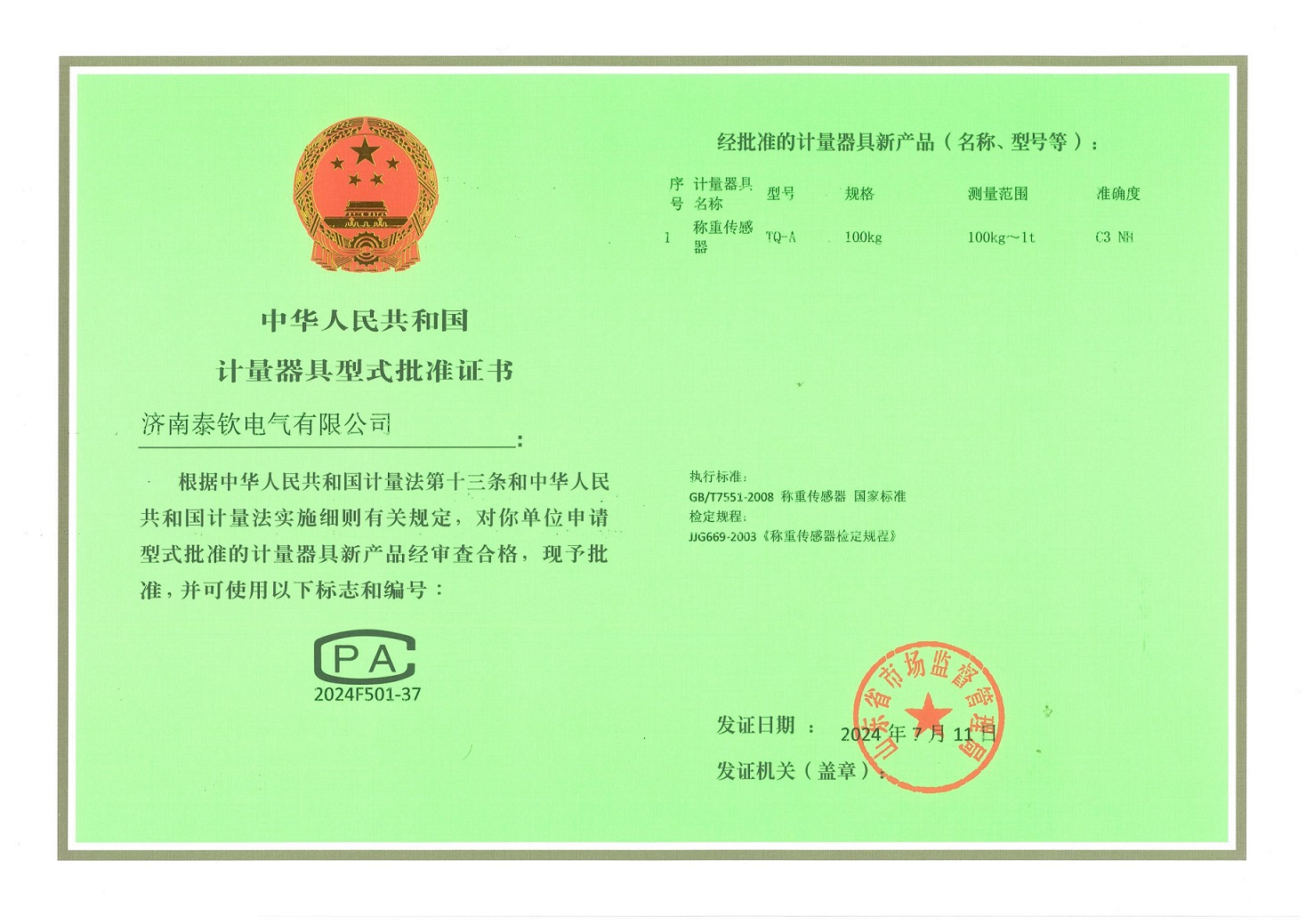 济南泰钦传感器,已通过ISO9001质量体系认证