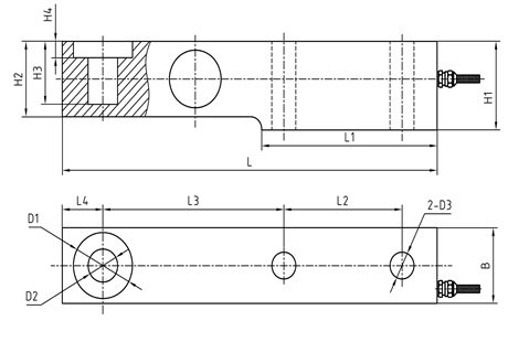 型号 | 量程(kN) | 量程(t) | L | L1 | L2 | L3 | L4 | H1 | H2/B | H3 | H4 | D1 | D2 | D3 |