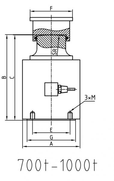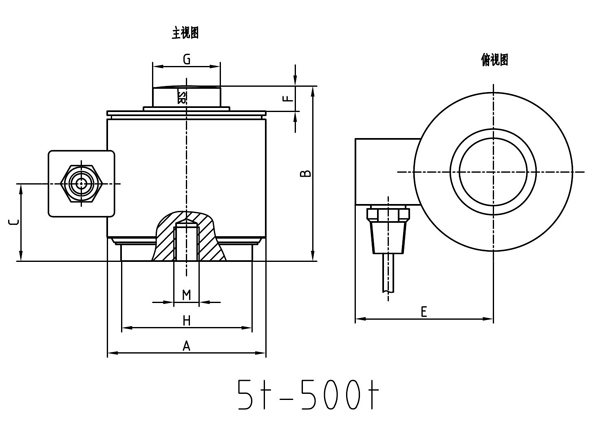 型号 | 量程(kN) | 量程(t) | A | B | C | E | F | G | H | SR | Minch | Mmm | MDP |